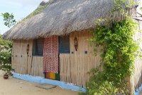 The family room – even called the Mask Hut – can contain 4 people. There are two double bamboo beds with mosquito nets. It’s furnished with a table, fan, a bamboo cabinet, local mats and a bamboo armchair. Outside and inside the hut, you can admire some traditional Ghanaian masks. A small zen garden is […]